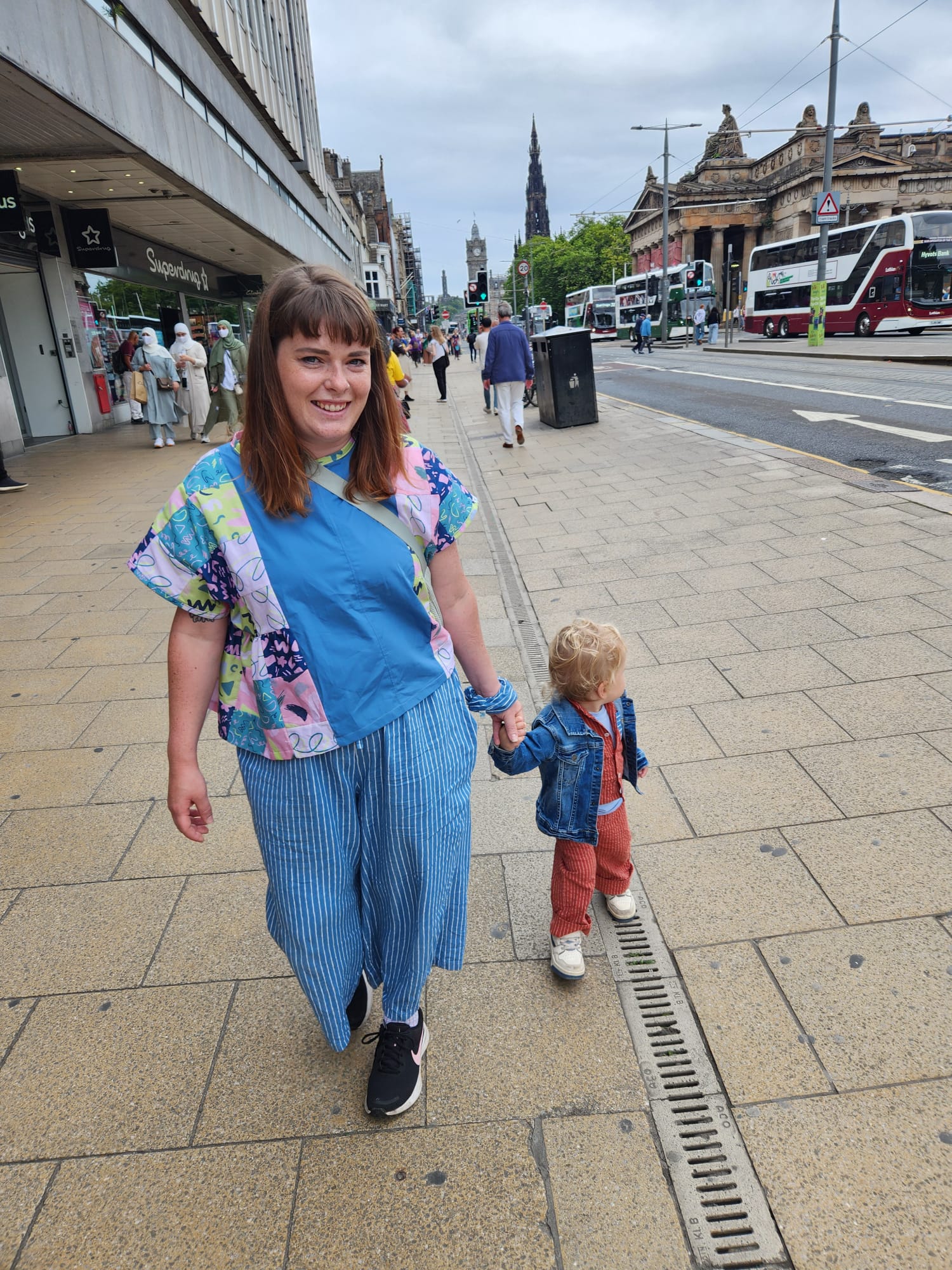 Fast forward a career in software testing and then charity work; in 2023 my husband and I moved to Edinburgh and had our son that November. The first year as a mum was a blur of love, milk, cuddles and pram walks. I was diagnosed with postpartum OCD, and through therapy I reconnected with my creativity, and in particular my sewing machine. I began making his clothes after feeling uninspired by the narrow selection and drab colour palette of clothes available for boys in shops.